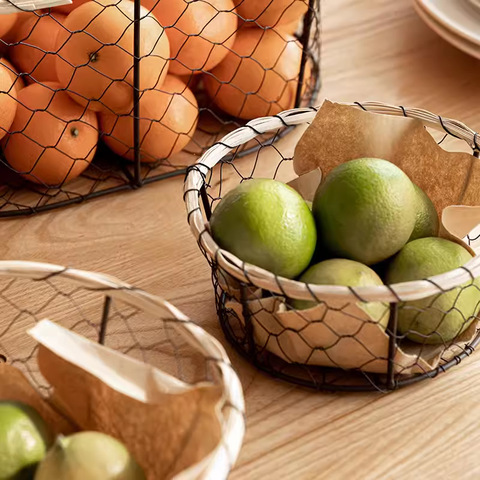 ตะกร้าตาข่ายใส่ขนมปังผลไม้ลวดไก่สำหรับจัดเก็บอุปกรณ์ในครัวสำหรับบ้านร้านอาหารเบเกอรี่ภาชนะใส่อาหาร