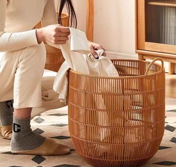 Trung Quốc Nhà sản xuất nóng Bán tay dệt PP mây nhựa giặt giỏ Organizer lưu trữ cản trở cho bẩn quần áo nhà khách sạn