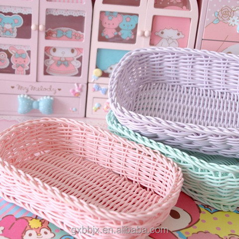 Hot bán giá rẻ tay-dệt lưu trữ Giỏ hình chữ nhật nhỏ màu hồng PP mây giỏ cho trang trí nội thất Tabletop Organizer